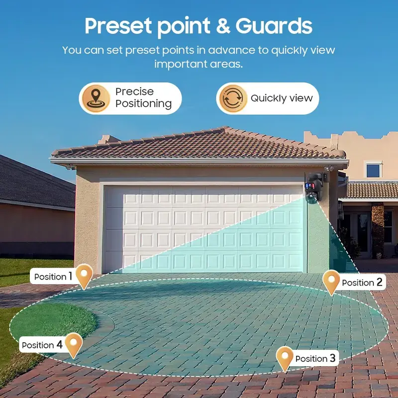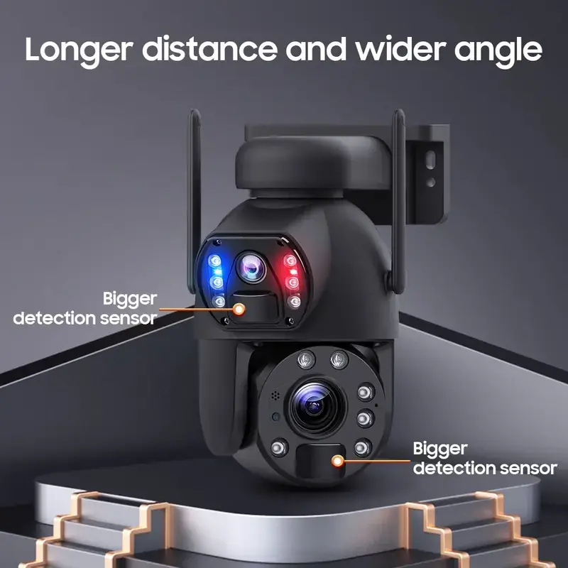 Daljinsko okretanje i nagib daju vam potpunu kontrolu nad kadrom. Sa 10x optičkim i dodatnih 10x digitalnim zumom možete da pređete sa široke scene na krupan kadar detalja u sekundi. Dve kamere rade sinhronizovano: širokougaona drži kontekst, dok teleobjektiv izdvaja važne tačke – registarske tablice, ulaze, opremu ili kritične zone.